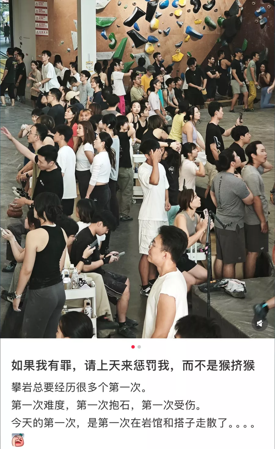 “随着这项运动的普及,专业性和安全意识逐渐被稀释了。”这是郑先生最切身的观感,三年前他刚开始接触抱石攀岩,先是找教练上课,把基本动作学了个七七八八后,才开始自己摸索和练习。如今,越来越多年轻人在社交媒体上看到抱石攀岩相关推荐,抱着尝试和打卡的心态加入,市面上不少抱石攀岩馆也提供单次攀岩团购优惠。但是,配备教练的攀岩课程价格昂贵,以至于“次新人带新人”或是“蹬腿就上”的现象十分普遍。