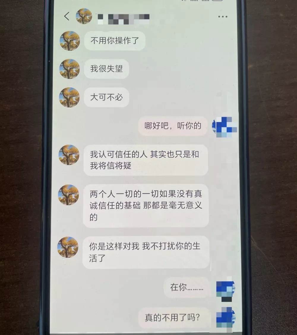 ▲秦玉不愿在转账“投资”的时候,对方展现出了对她的“失望”,就此让秦玉心软、动摇。受访者供图