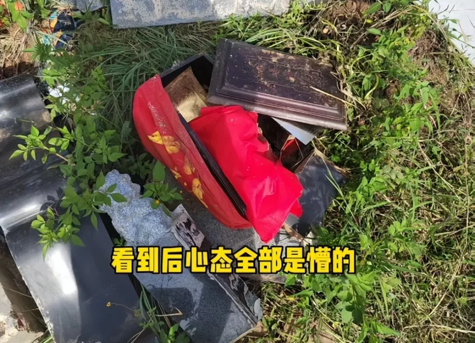 4月后,家人发现坟墓遭破坏,骨灰盒被丢野地