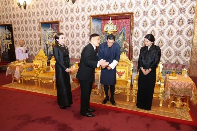 在完成当天的仪式后,两对王室夫妇肩并肩地走出了宫殿,虽然现年73岁的泰王拉玛十世玛哈·哇集拉隆功和不丹国王纳姆耶尔保持着一定的距离,但苏提达跟吉增·佩玛就像是许久未见的好闺蜜似的,手拉着手说着悄悄话。