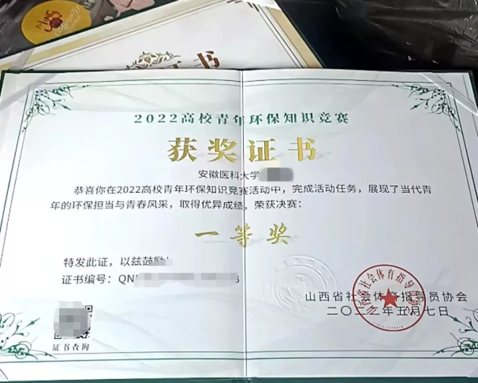 李群在学校获得的荣誉证书