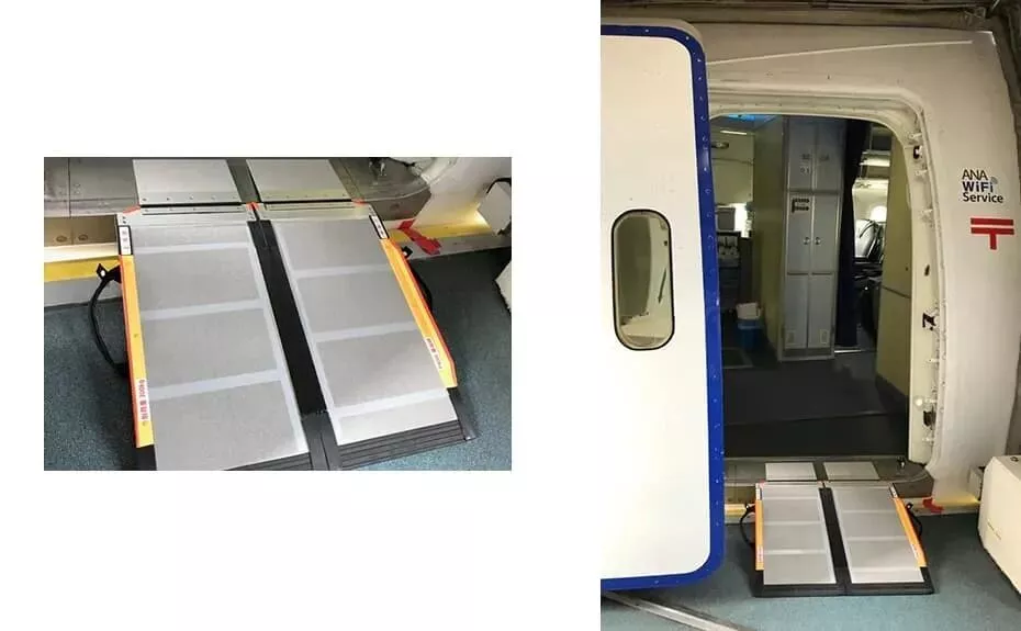 根据全日航空的官网介绍,日本国内50个机场都配备有帮助乘客登机的坡道装置,可以顺利克服登机平台和飞机舱门的高度差。而2010年启用的羽田国际航站楼,是日本首个在整体规划阶段全面采用无障碍设计的国际航站楼,2014年扩建部分安装了16台无台阶登机桥,在世界范围内属于首例。