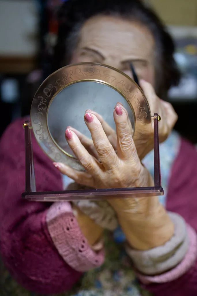 如今102岁的她寡居独处,主要通过电话销售,偶尔上门拜访。让自己忙碌起来有助于驱散孤独。余暇时,她或者打毛衣,或者给在这一带出没的猫喂金枪鱼味的猫粮,或等待街坊来喝乌龙茶。尽管多数老主顾已先她离去,她从未考虑过放弃这份事业。