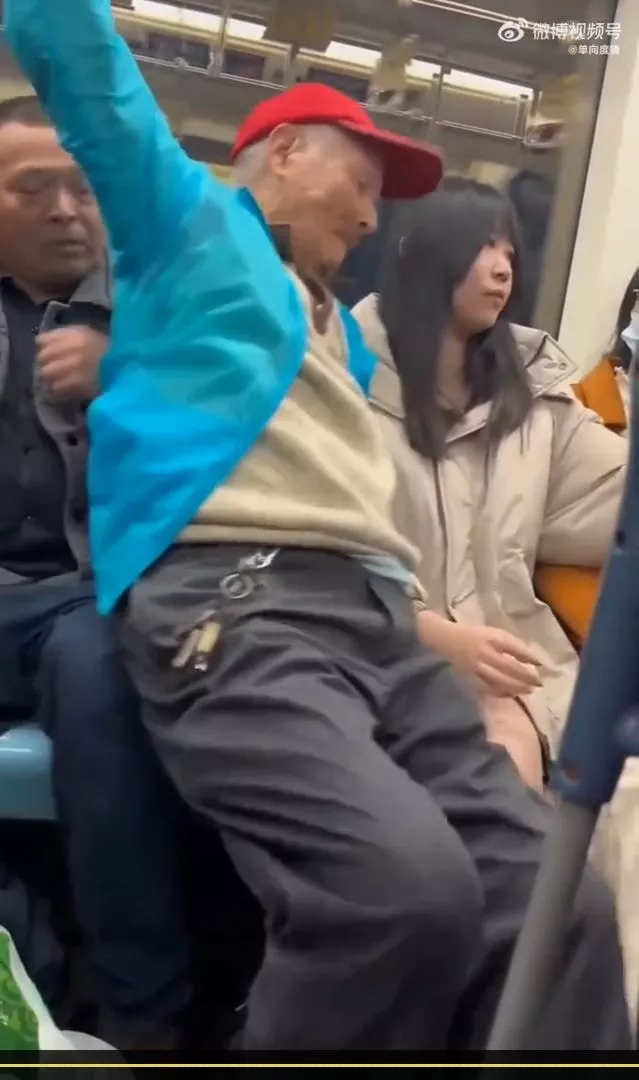 上海一名老翁搭乘地铁时要求一名年轻女乘客让座,被拒绝后竟一屁股坐上女乘客的大腿,还狂蹭并伸手偷摸,露出诡异笑容,气得女乘客打电话报警。