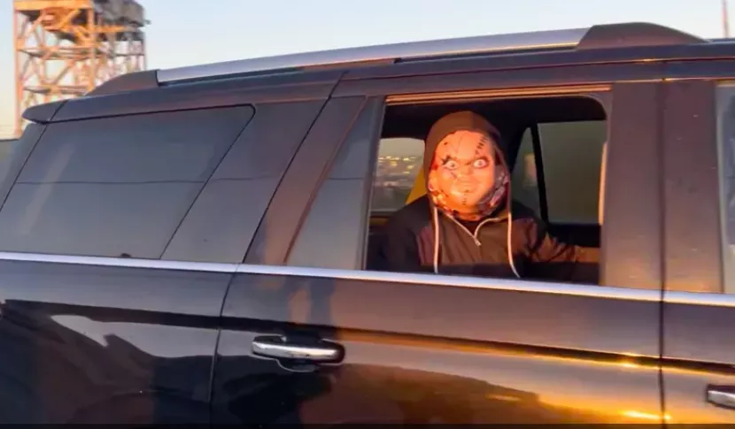 Patrol)志愿者Phoebe提供的记录和影片显示,10月29日上午约7时23分,一名探员戴“鬼娃恰吉”(Chucky)面具驾车离开设施,约10分钟后另一名探员戴“Momo挑战”(Momo