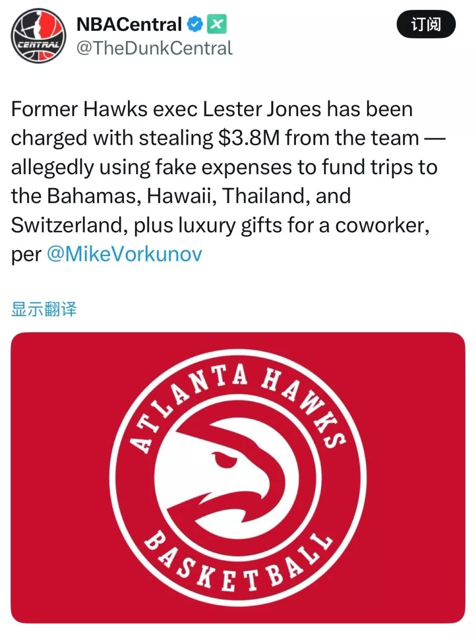 Vardon联合报道称,老鹰前高管被指控挪用球队公款380万美元,为自己打造奢靡生活。