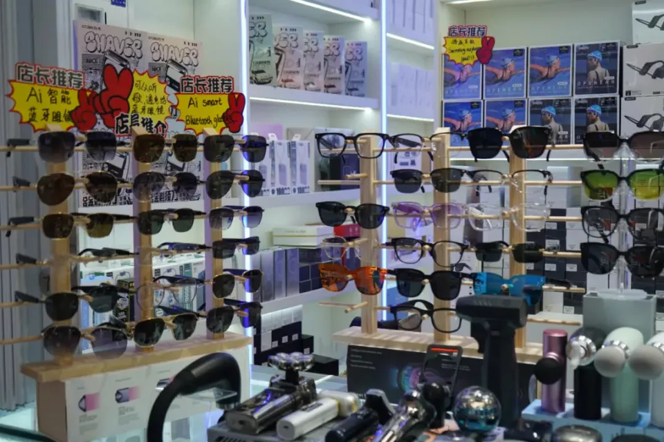 以眼镜为例。目前,华强北带摄像头的AI眼镜价格普遍在200—500元,而音乐眼镜在80—200元。不少档口大量上架不带摄像头的蓝牙音乐眼镜,而只象征性进几款甚至干脆不卖摄影眼镜。