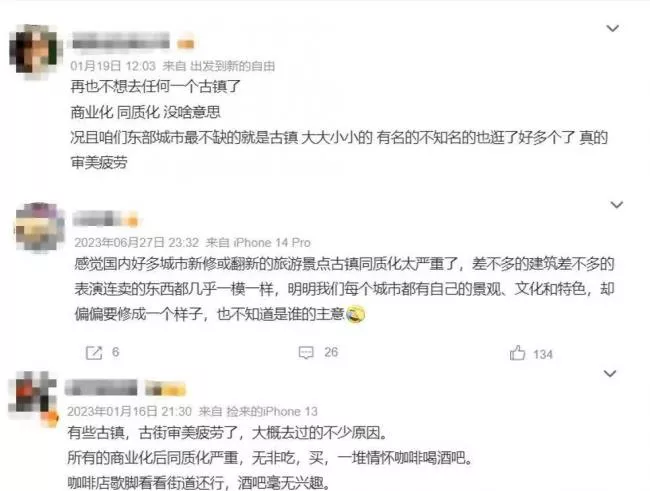 中国旅游研究院的数据更扎心:93.4%的游客觉得古镇“相似”或“非常相似”,有人发朋友圈的古镇照片,自己都分不清是在哪拍的。