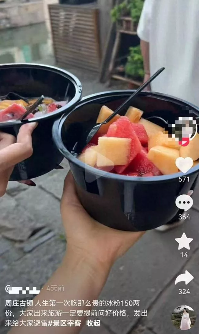 这种事不是偶然:周庄两份普通冰粉卖150元,重庆某古镇6块散装糖要收466元,商家全拿“你自己不看价”当借口。