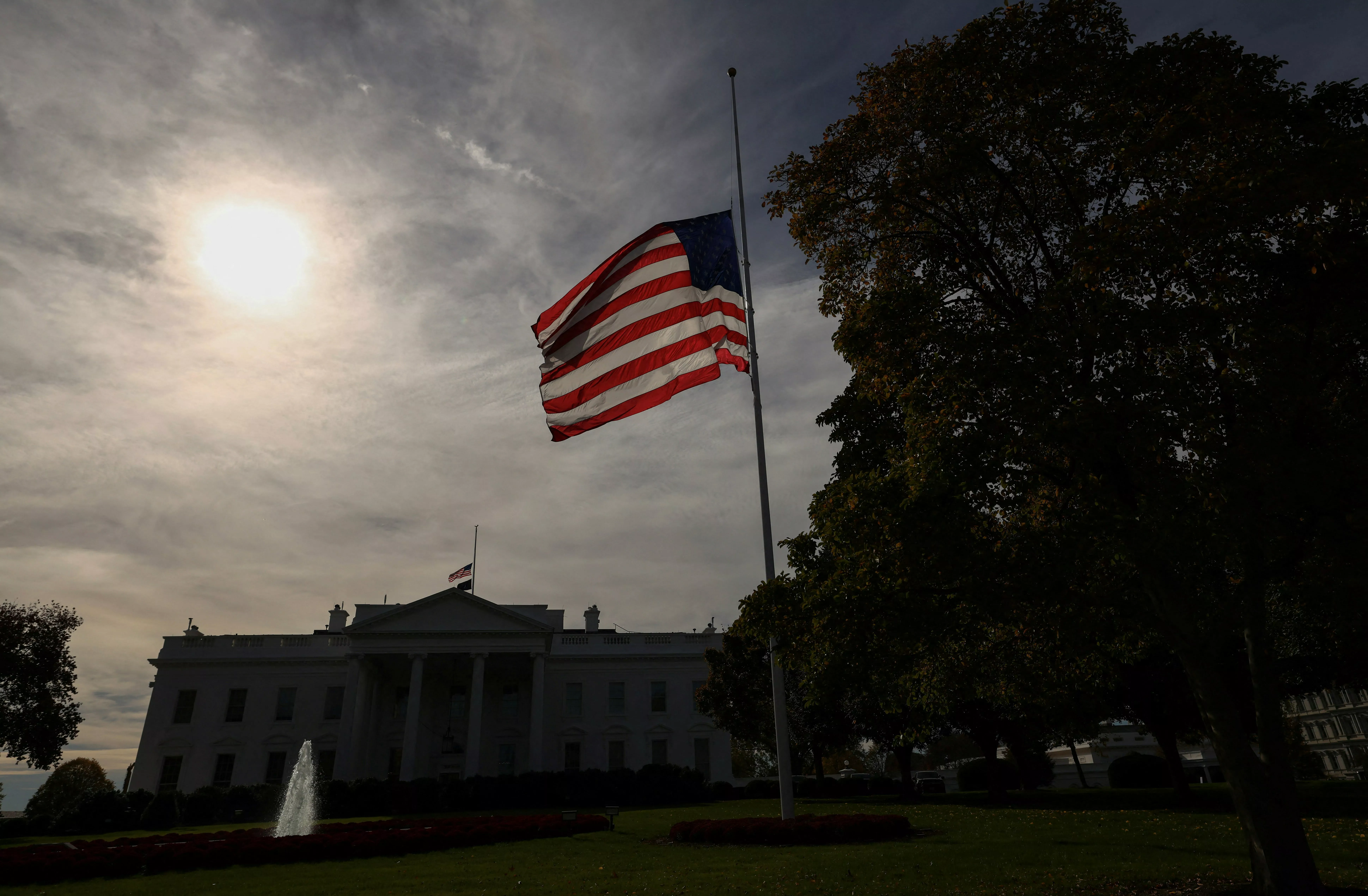 美国前副总统切尼(Dick Cheney)2025年11月4日因肺炎及心血管疾病併发症去世后,白宫降半旗。(Reuters)
