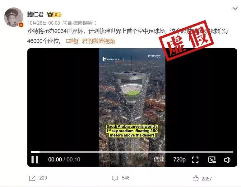沙特建造的“空中足球场”画面流出?确有计划,但网传视频是AI