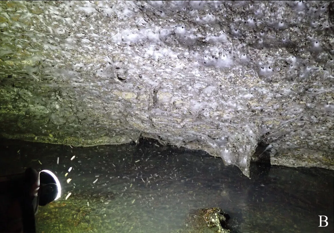 据美国网站“生活科学”(LiveScience)报导,这座蜘蛛网位于希腊与阿尔巴尼亚交界处的地表下方,沿著一处狭长且低矮的通道牆面延伸,面积高达1140平方英尺(约106平方米),地点在一座含硫洞穴的永久黑暗区域入口附近。