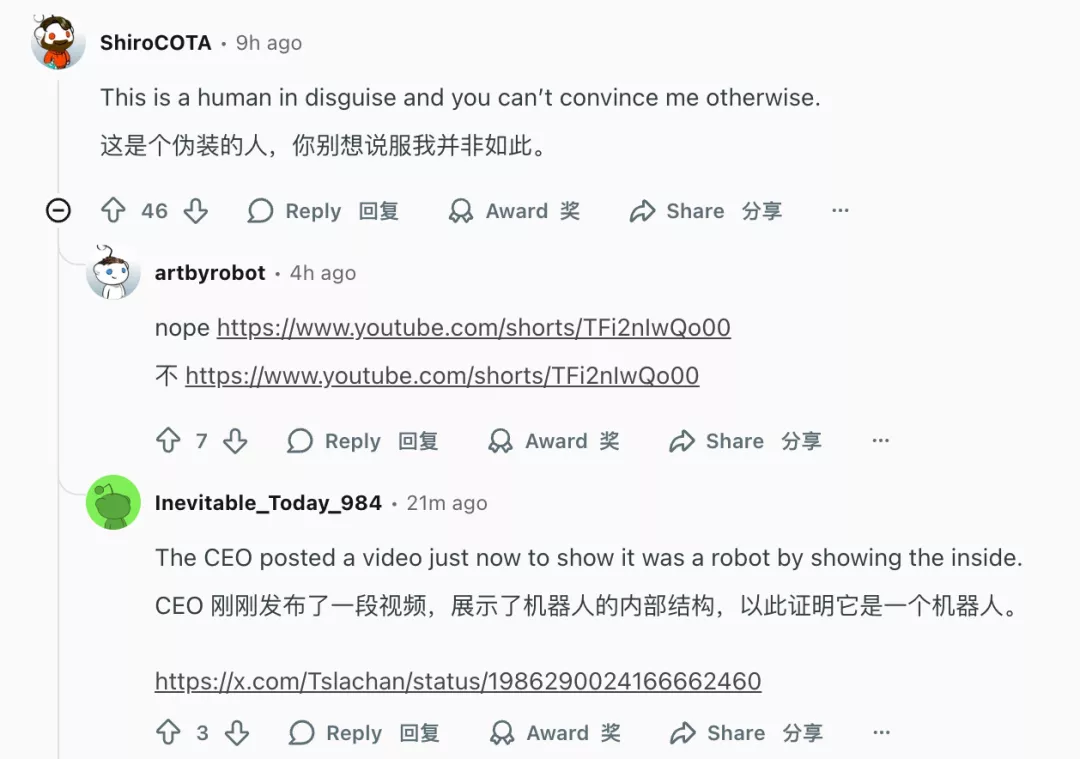 只不过,特斯拉当年是真人装机器人,如今小鹏是真机器人被怀疑是真人。