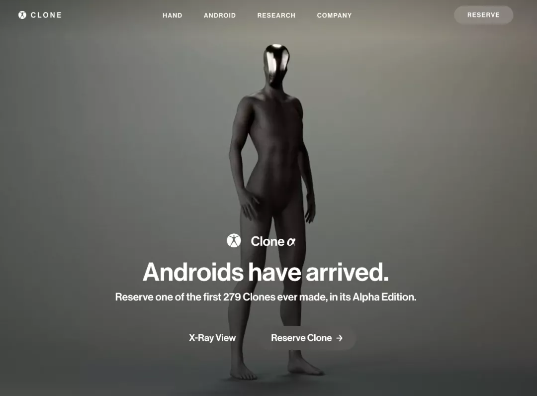 说起来,IRON 这种全身包覆柔性皮肤、高度仿生的外观设计,跟波兰公司 Clone Robotics 在 2 月 21 日发布的