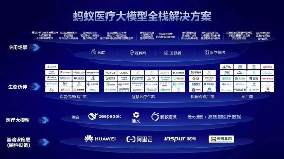 第二,蚂蚁医疗大模型在HealthBench、MedBench等国内外多个权威医疗评测中,达到行业领先水平,在医学视觉和报告解析等领域也刷新行业基准。