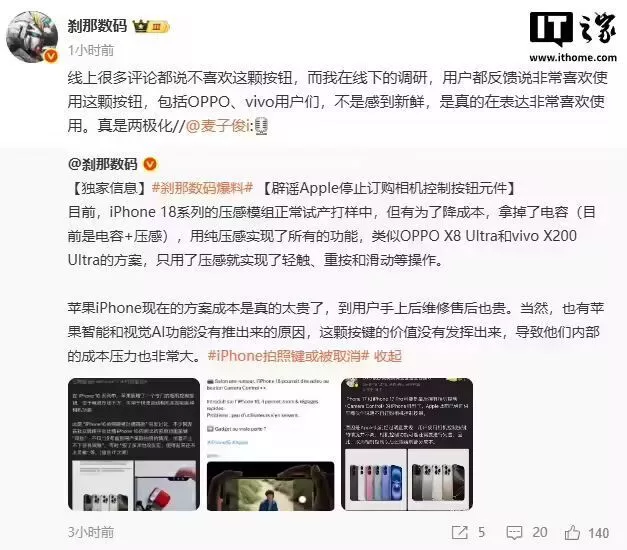 不过 @刹那数码 给出了不同的说法,他强调 iPhone 18