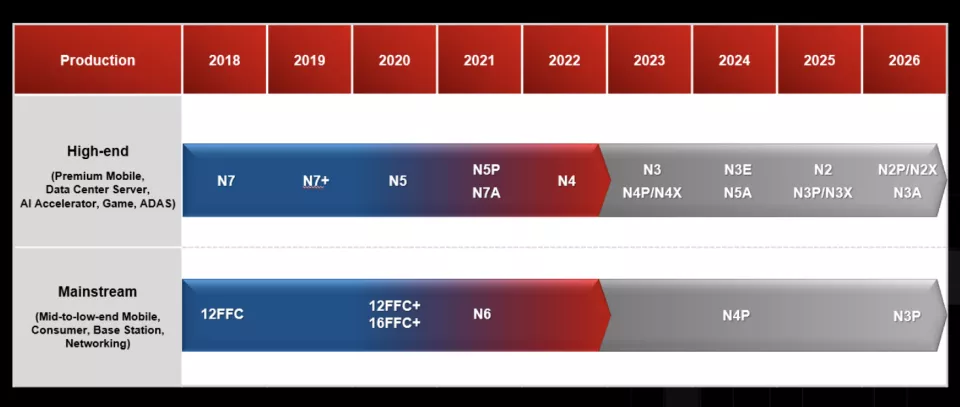 而到了明年,手机芯片将从 N3P 工艺,升级到 N2 以及 N2P。