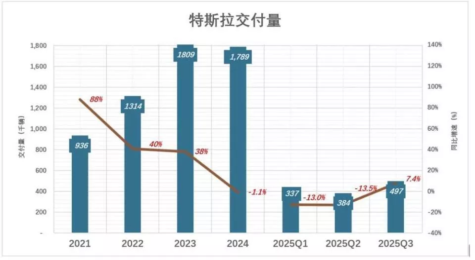 就拿最简单的交付量来说,特斯拉从去年开始,受马斯克 “考公” 和政治言论影响,交付量就一直在下滑。