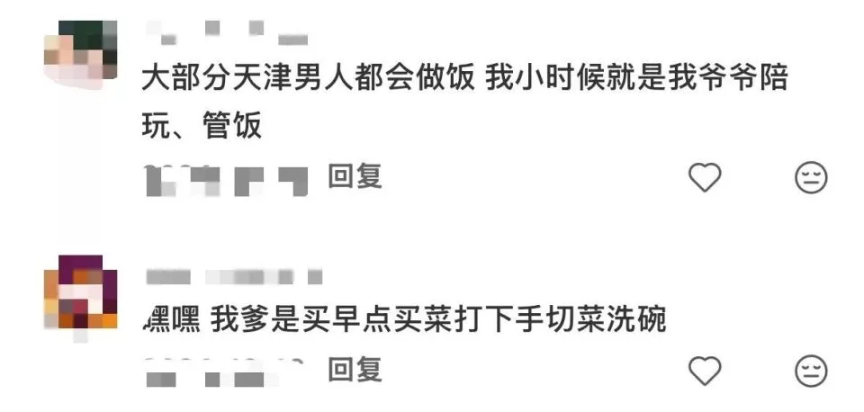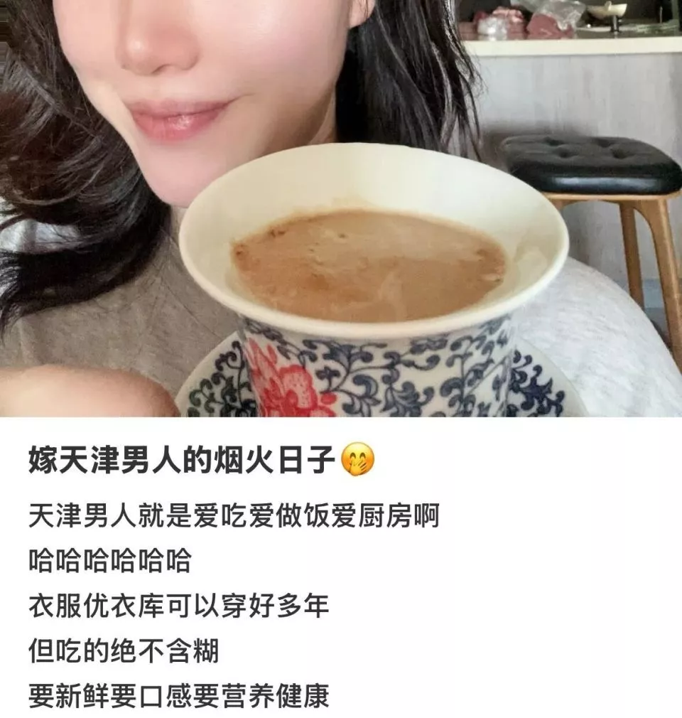 “不过对于天津男的来说,做家务算不得什么,因为反正他们也没什么大志向,不爱搞事业。所以这种上上班、做做家务的平淡生活,就能让天津男的足够乐呵。”