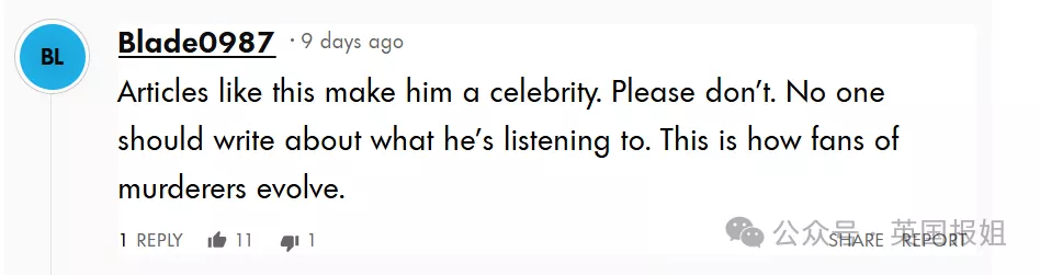 “不断报道他进展的文章正在把他打造成名人,求求了,没人关心他喜欢听什么歌。那些迷恋杀人凶手的粉丝也是这么慢慢培养起来的。”
