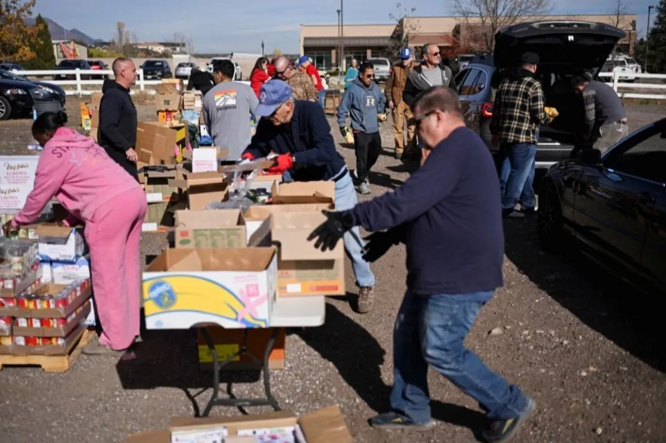当地时间2025年11月7日,美国科罗拉多州科罗拉多斯普林斯市,美国政府“停摆”持续,美国民众排队领救济。 东方IC