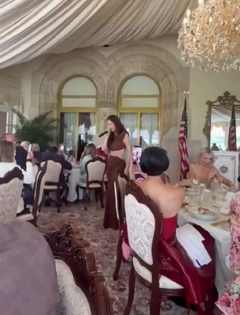 美媒《每日野兽》注意到,宴会现场,宾客们穿着盛装,昂首阔步走过好莱坞风格的红地毯,通往特朗普位于棕榈滩的豪宅;特朗普的政治盟友、支持者和名人一同欣赏着歌剧表演。出席者包括英国极右翼政客法拉奇(Nigel