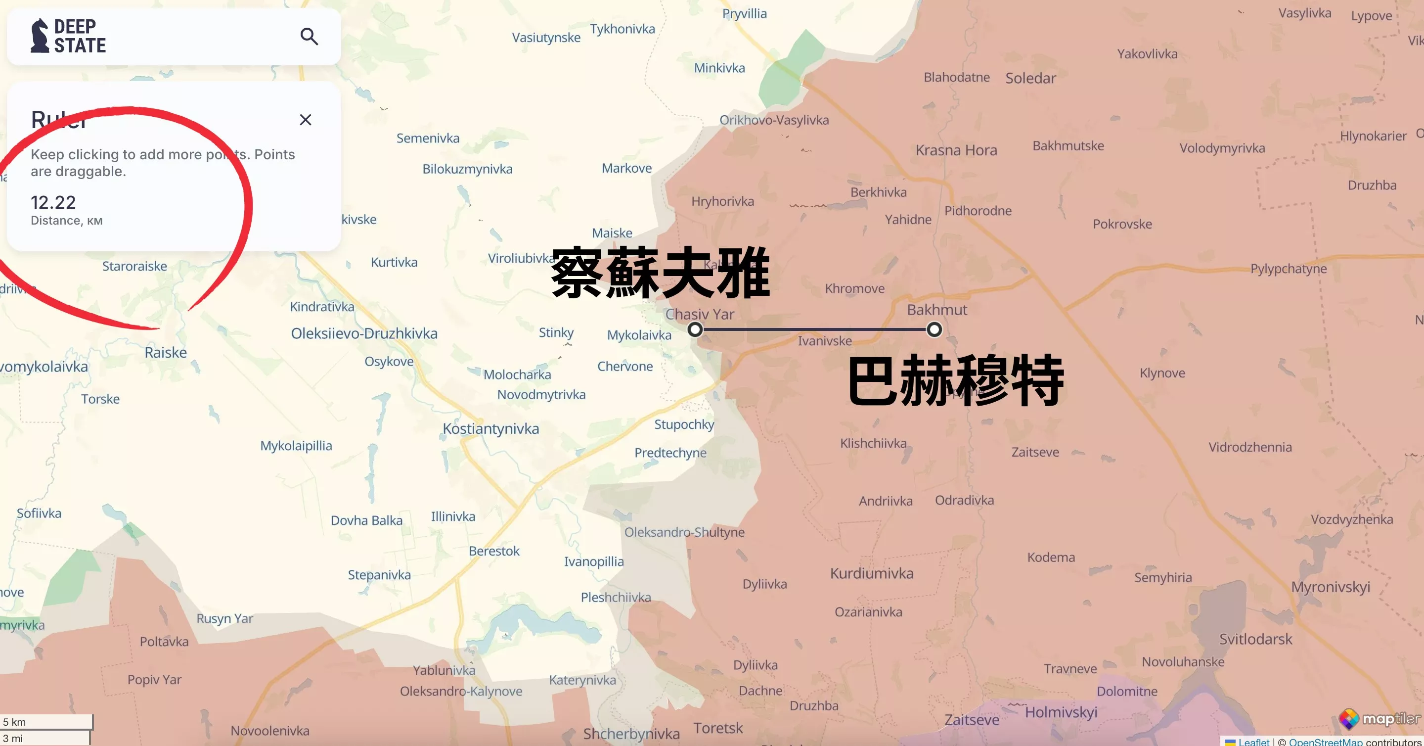 攻击巴赫穆特两年半之后的今天,俄军还未能完全攻下其以西十馀公里的察苏夫雅(Chasiv Yar)。(Deep State)