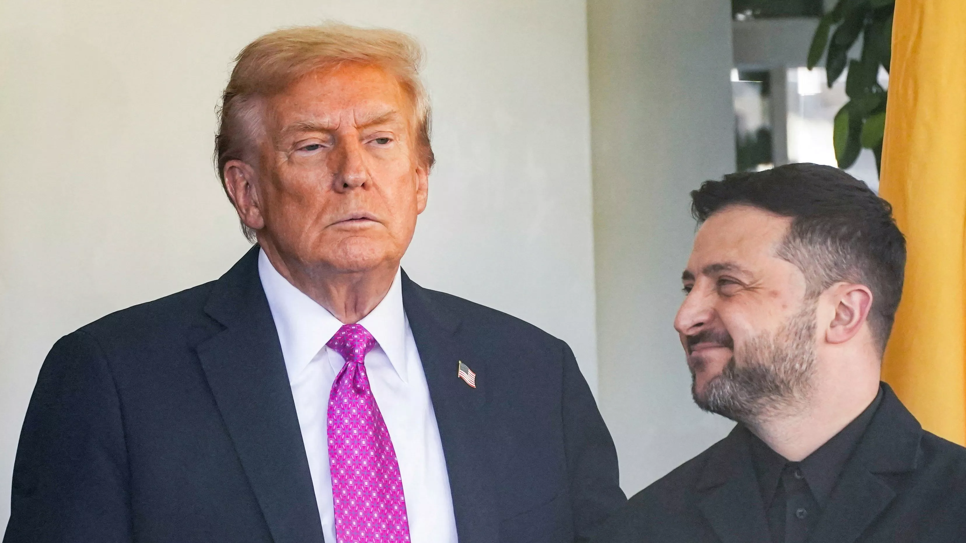 2025年10月17日,美国华盛顿,总统川普(Donald Trump,左)在白宫欢迎乌克兰总统泽连斯基(Volodymyr Zelensky,右)。(Reuters)