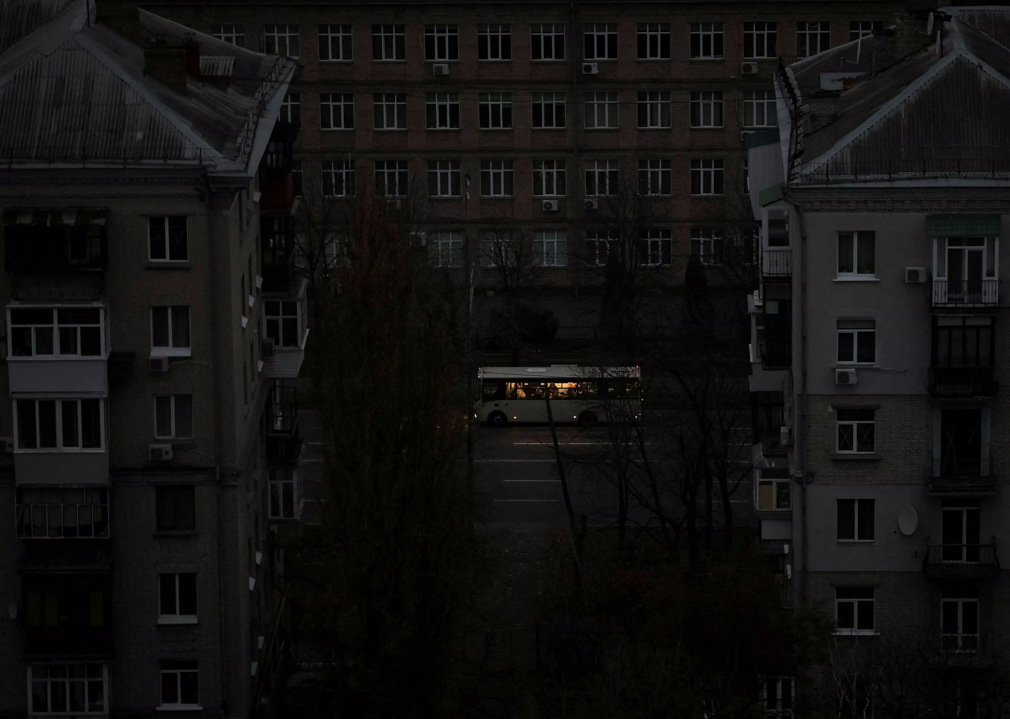 11月8日,在俄罗斯远程攻击之后,基辅陷入停电。(Reuters)