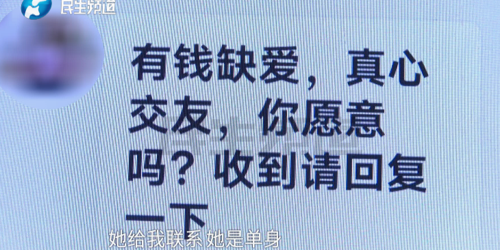 “我有两个目的,一个是交友,一个是挣钱!”在软件上,尚先生认识了女网友小姚,对方介绍:有钱缺爱,真心交友。