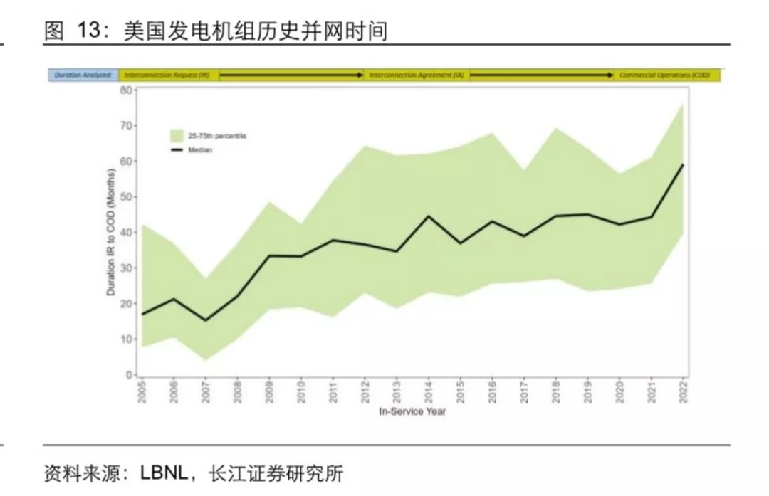 发电量跟不上需求,这个锅并不完全在发电侧,因为电力公司终究是追求利润的。关键的症结在于电网侧的“躺平”。新增电源接入电网的流程漫长而复杂,等待并网的项目排队时间三年起步,最近能源部都怒了,准备推一项新法案强行把给数据中心供电的机组时长压缩到1-2年。