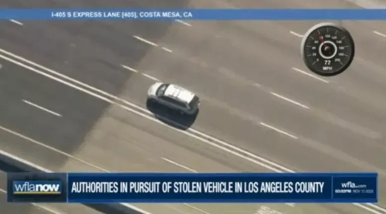 随后,嫌犯驾车驶入405号高速公路往南方向行驶,加州高速公路巡警(CHP)随后接管了追捕工作。