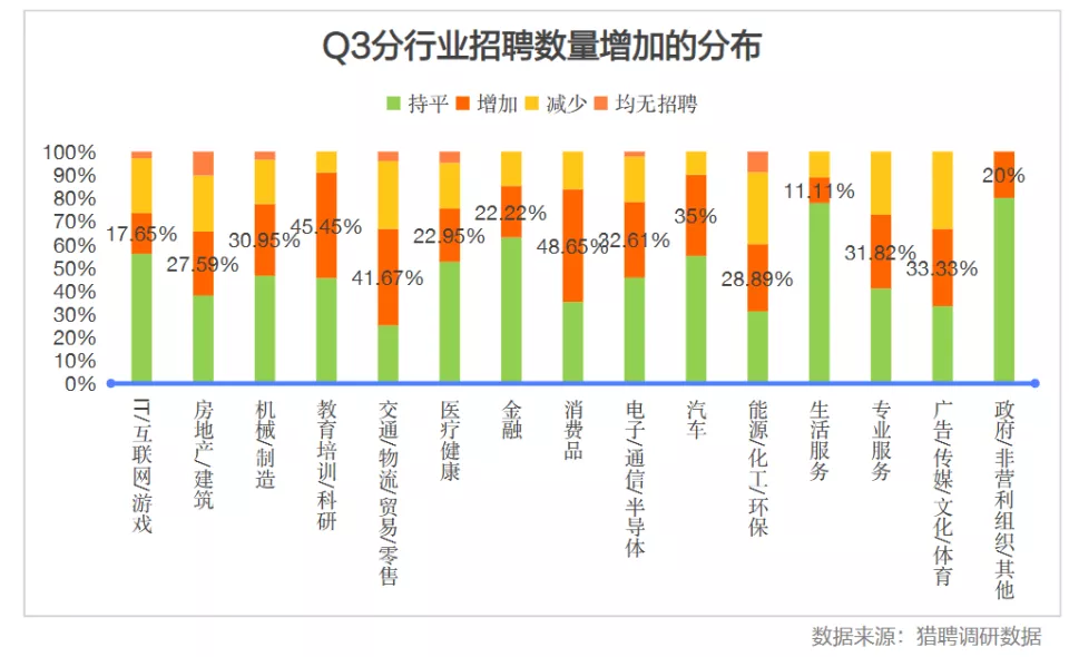 同时,该报告指出,受行业调整与成本控制压力影响,互联网/游戏行业招聘增长较弱,招聘数量增加的企业仅占17.65%。