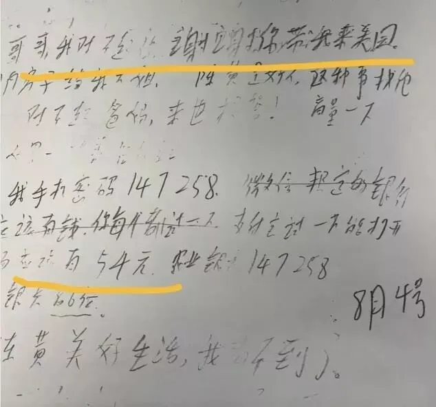 此前,据《世界日报》报道,葛超峰的遗书首次曝光,他在遗书中交待了自己的银行卡密码,不过支付宝账户只剩54元人民币,最后还写道:“美好生活,我是看不到了。”