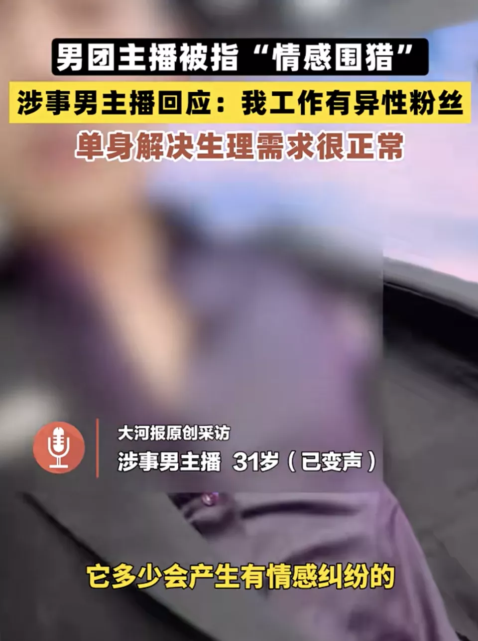 他还表示,与粉丝“聊天过程中解决生理需求很正常”,“做这种主播工作本来就容易产生情感纠纷”。