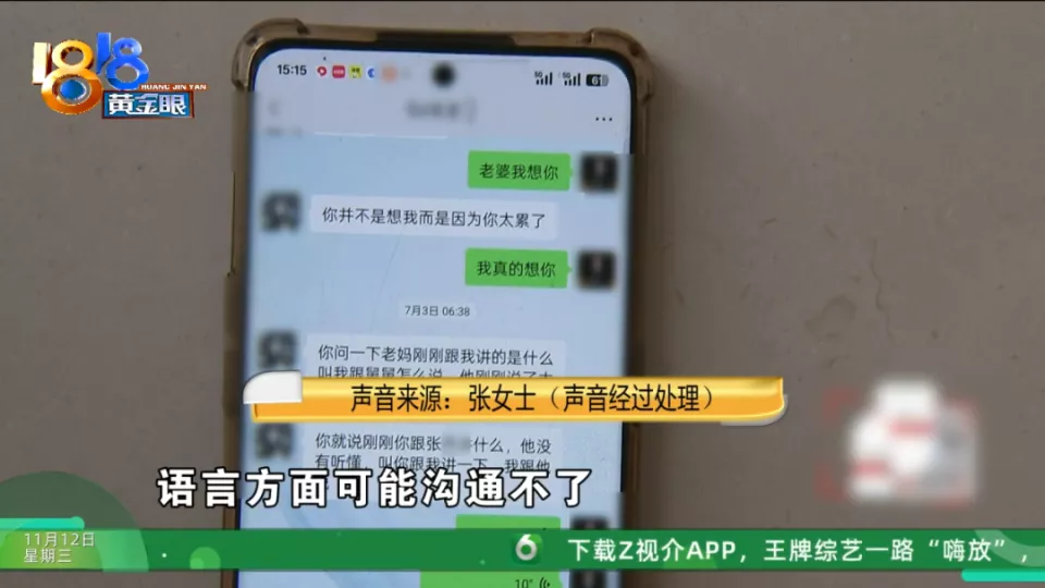 张女士:语言方面可能沟通不了,他不会当我的面聊天,他会跑到房间去拿手机微信跟我聊天。而且我感觉他有点“妈宝男”,他啥都听他妈的。有一次晚上差不多快12点钟了,我叫他出来跟我聊天,结果他就把他妈叫醒,叫他老妈出来跟我聊天。我真的是服了,不知在那里说啥。