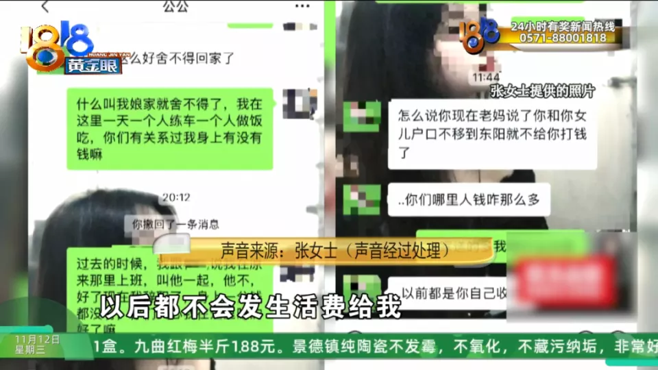 张女士:他们家里说结婚之后,他们要对我特别好,我可以不用上班。过来差不多一个月之后,他们生活费就不发。他们说如果我户口不移过去,以后都不会发生活费给我。
