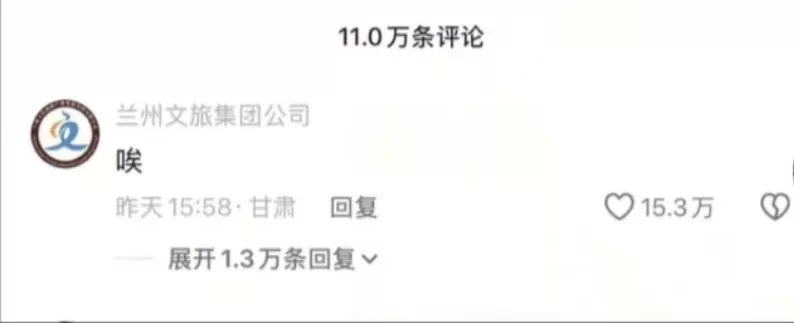 此事引发热议,有人对该女子发视频投诉的行为表示不理解,兰州文旅集团公司官方号在投诉视频下方评论了的“唉”成为点赞上万的热评。该公司还将官号简介改为“金城兰州欢迎您!没剪刀!”。