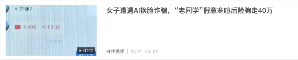 除了肖像权侵害、名誉损害,AI换脸还被广泛用于诈骗。