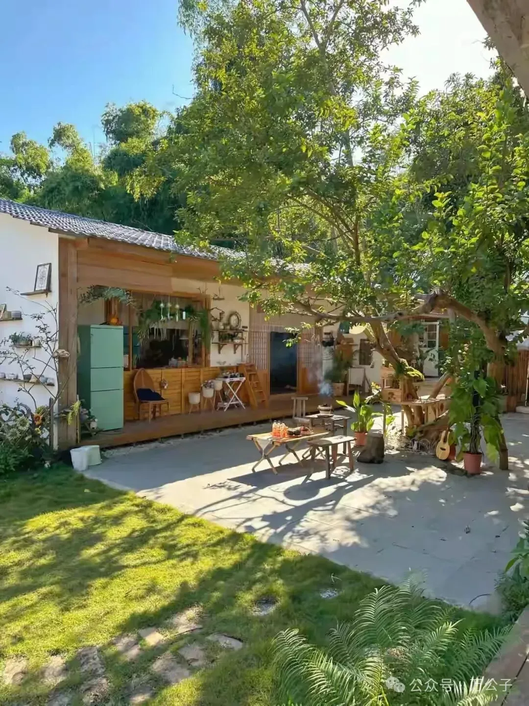 院子里有花草、果树、小池塘,还有手工灶台和竹编凉亭,一年四季都有不同的风景,既实用又治愈。