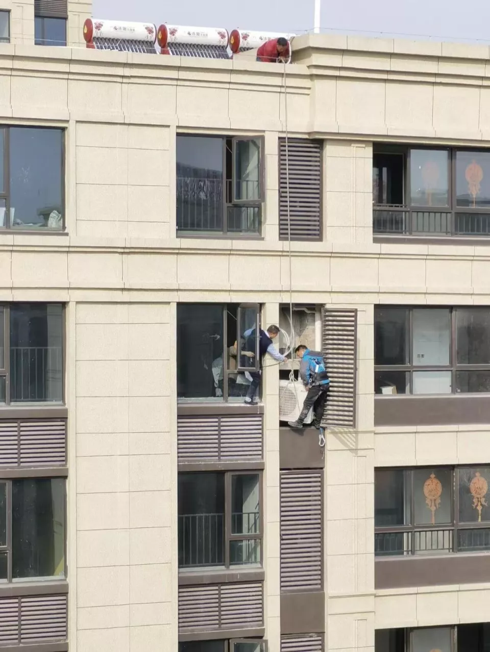 整个过程真的十分危险,也让很多朋友感叹:空调外机的安装真的拿生命去拼的啊。