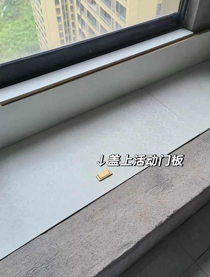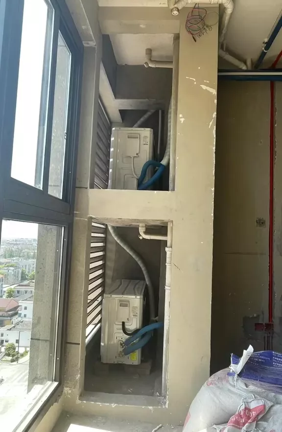 原来是设置在飘窗下方,但她家的飘窗没有用水泥板封住,而是留了空的位置。这样就可以等到空调外机安装好之后,再用板封上就可以了。