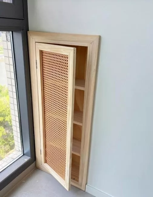 有的网友还物尽其用,在安装好空调外机后,还定制了一个木质的柜门直接嵌入到洞口,不仅增加了收纳空间,还美观多了。