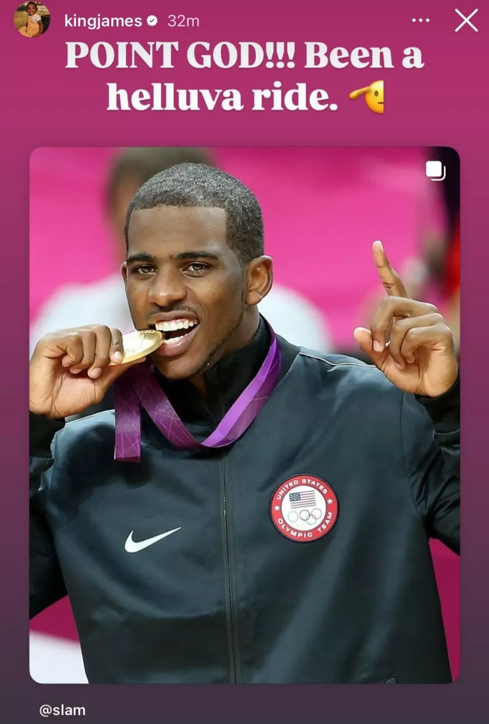 对此,湖人球星詹姆斯在INS转发了保罗在北京奥运会咬着金牌的照片,并写道:“控卫之神,这真是一段惊心动魄的旅程。”