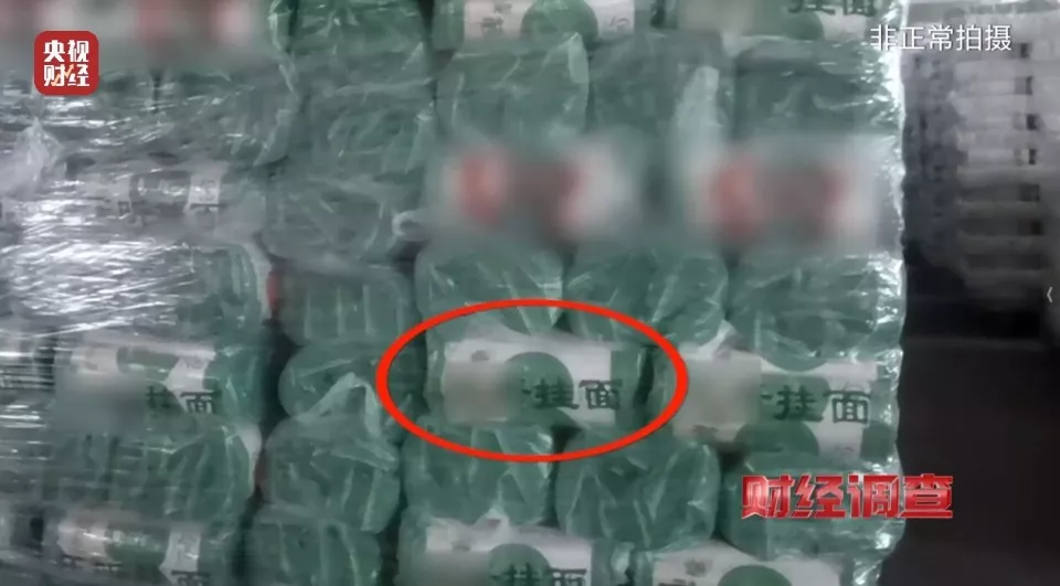 记者以订货为由联系了卖家老周,来到了位于山东邹平魏桥镇的“生产车间”,进门看到的竟是一大堆包装整齐的面条。