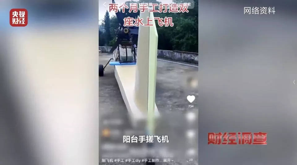 《财经调查》记者根据群众反映,在短视频平台搜到相关内容,视频中主播分享自制飞机过程或驾驶自制飞机飞翔,靠 “农民造飞机” 等标签吸引网友点赞关注。