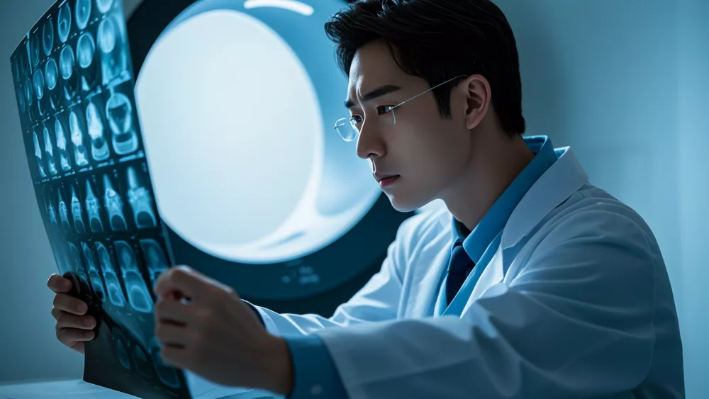 他还仔细对照了这些病历在系统中的影像号和放射科手写记录本,以证实手写记录本上确实没有这些病人。而发现三个患者用同一个片子,最开始是朱医生从胸部CT片子上,看到了两位患者的吊坠形状和位置基本一致,此后又在另一个25岁女患者的片子上找到了相似的吊坠。