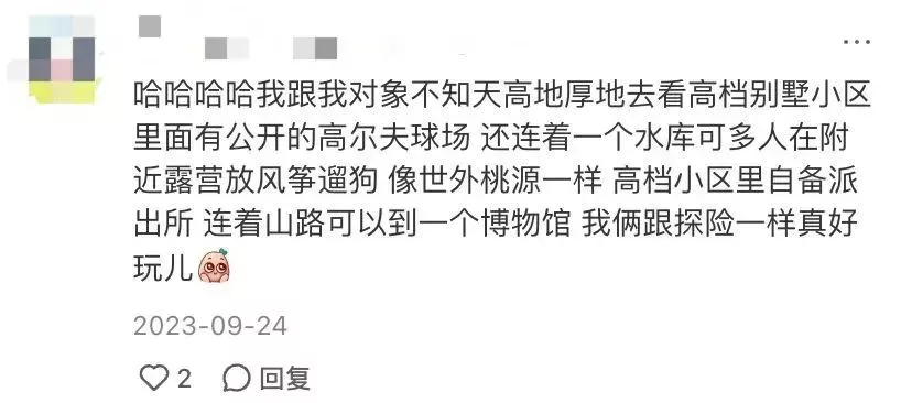“虽然买别墅看钞能力,但看别墅却是free的。哪怕没有富婆的命,但也一样可以限时享受豪宅体验,头头是道点评有钱人的品味。”