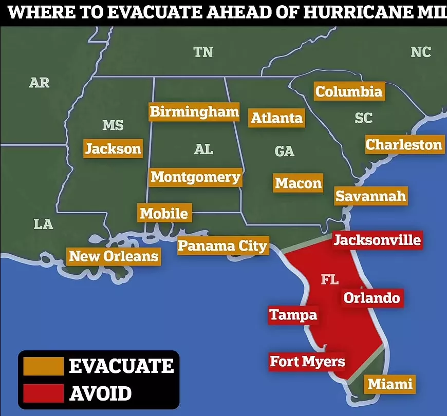 昨夜,“米尔顿 ”不断加强,专家呼吁将其列为史无前例的六级飓风,然而今天清晨,飓风又下降为四级。市长Jane Castor连夜发出最严厉警告:告诫所有居民“要么撤离,要么等死flee or die”。