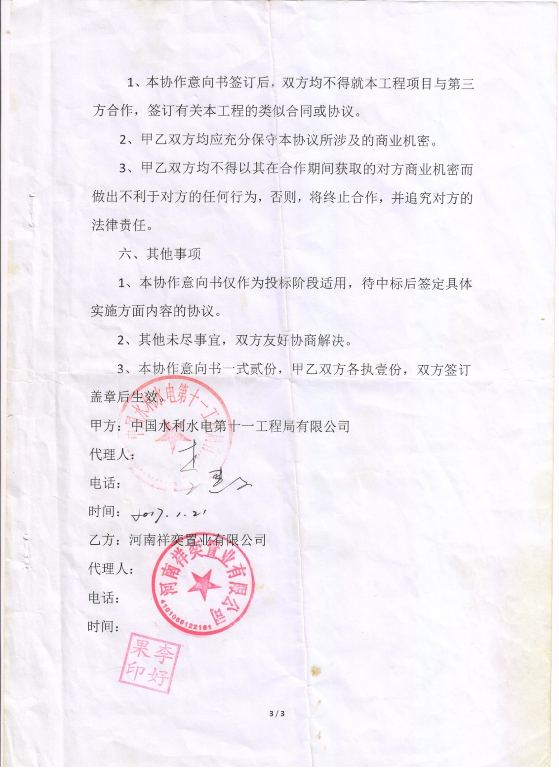 2017年由于工程迟迟没有开工,直到2018年10月份双方统一将原协议作废,又补签了一份两个亿的《绿化工程分包施工协议书》(详见附件3)。